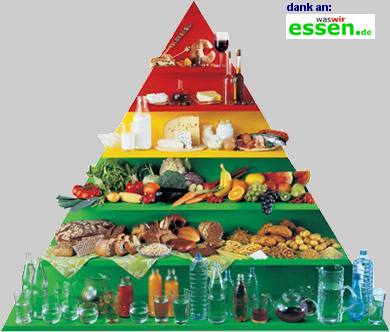Eine Portion steht für 200 g Gemüse, gegart, roh oder als Blattsalat oder ca. 150 g Obst (das entspricht dem essbaren Anteil eines großen Apfels). Vier Portionen bedeuten zwei Portionen Gemüse in irgendeiner Form, zwei Portionen Obst, zusätzlich wird empfohlen, ein Glas reinen Saft zu trinken, „4 + 1“ heißt es deshalb auf dieser Stufe der Pyramide.